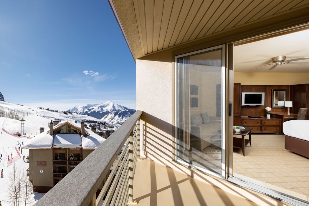 The Slopeside View Junior Suite consists of one king-size bed and one sleeper sofa divided by a privacy wall, one bathroom, and astonishing slope-side views of the peak of Crested Butte Mountain.